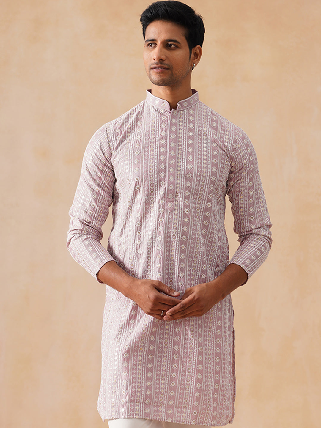 Pink Kurta with White Thread Embroidery ( KO 5280 Magenta )