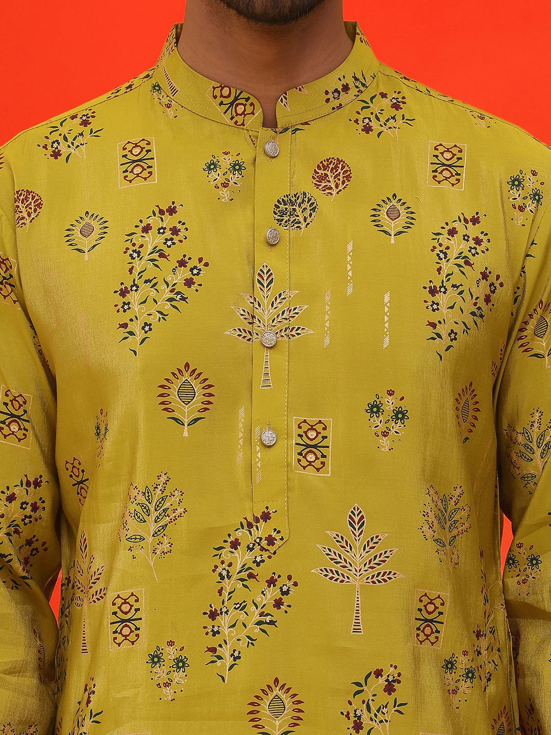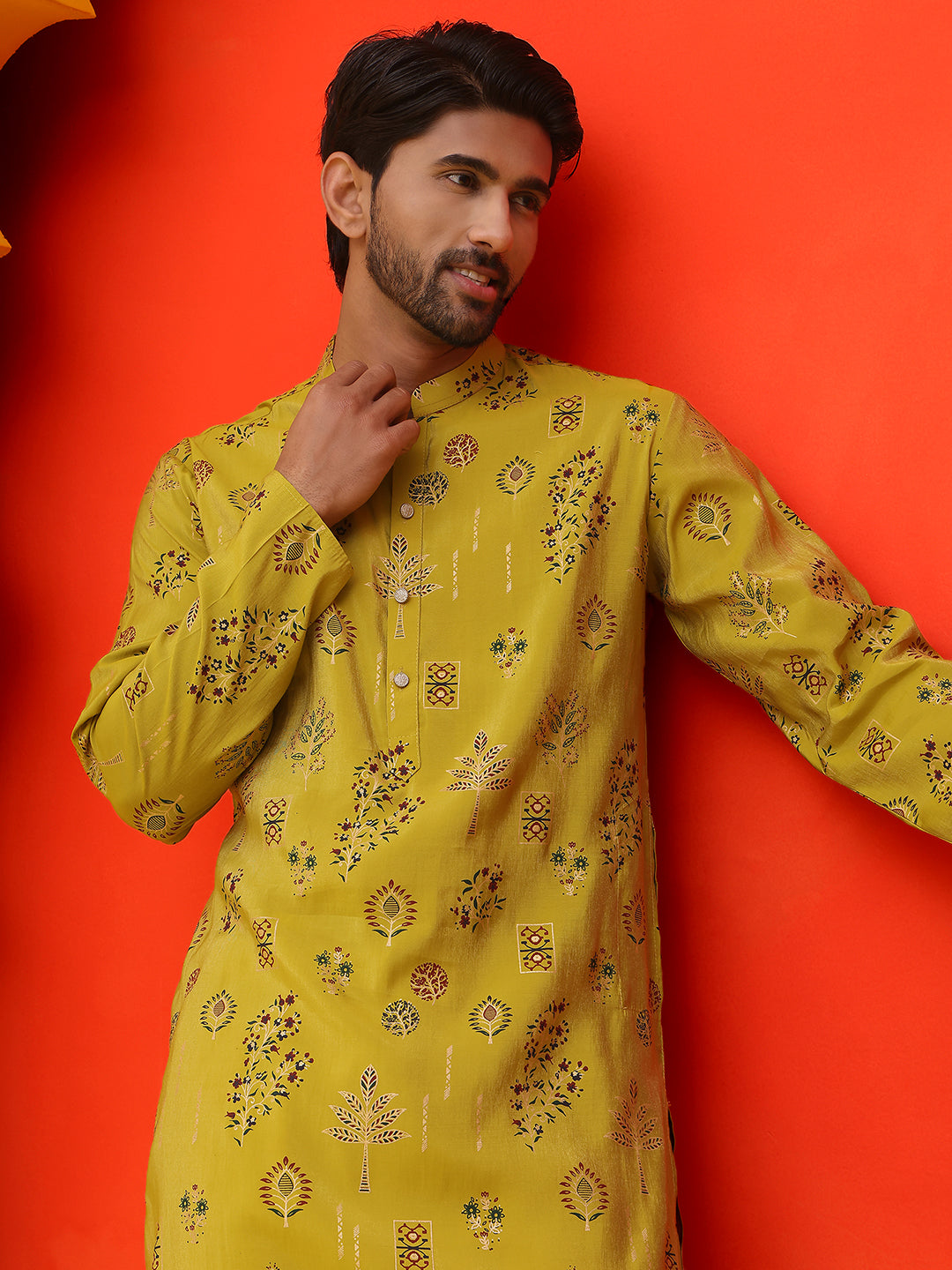 Printed Silk Blend Straight Kurtas ( KO 5218 Mustard )