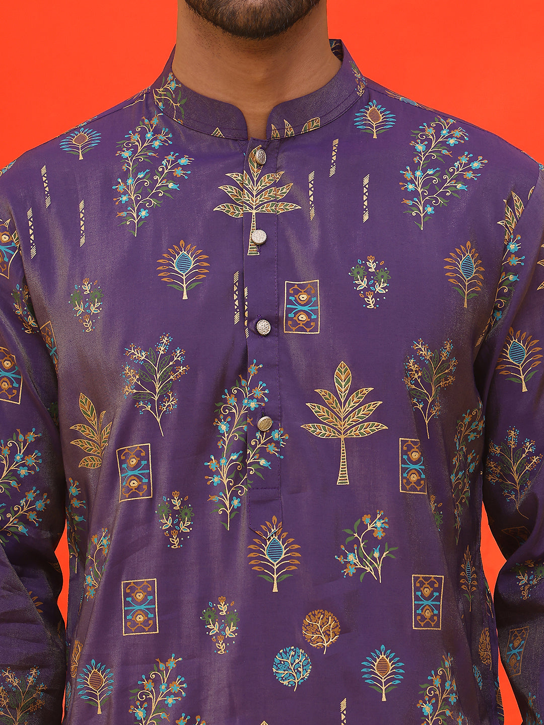 Printed Silk Blend Straight Kurtas ( KO 5218 Purple )