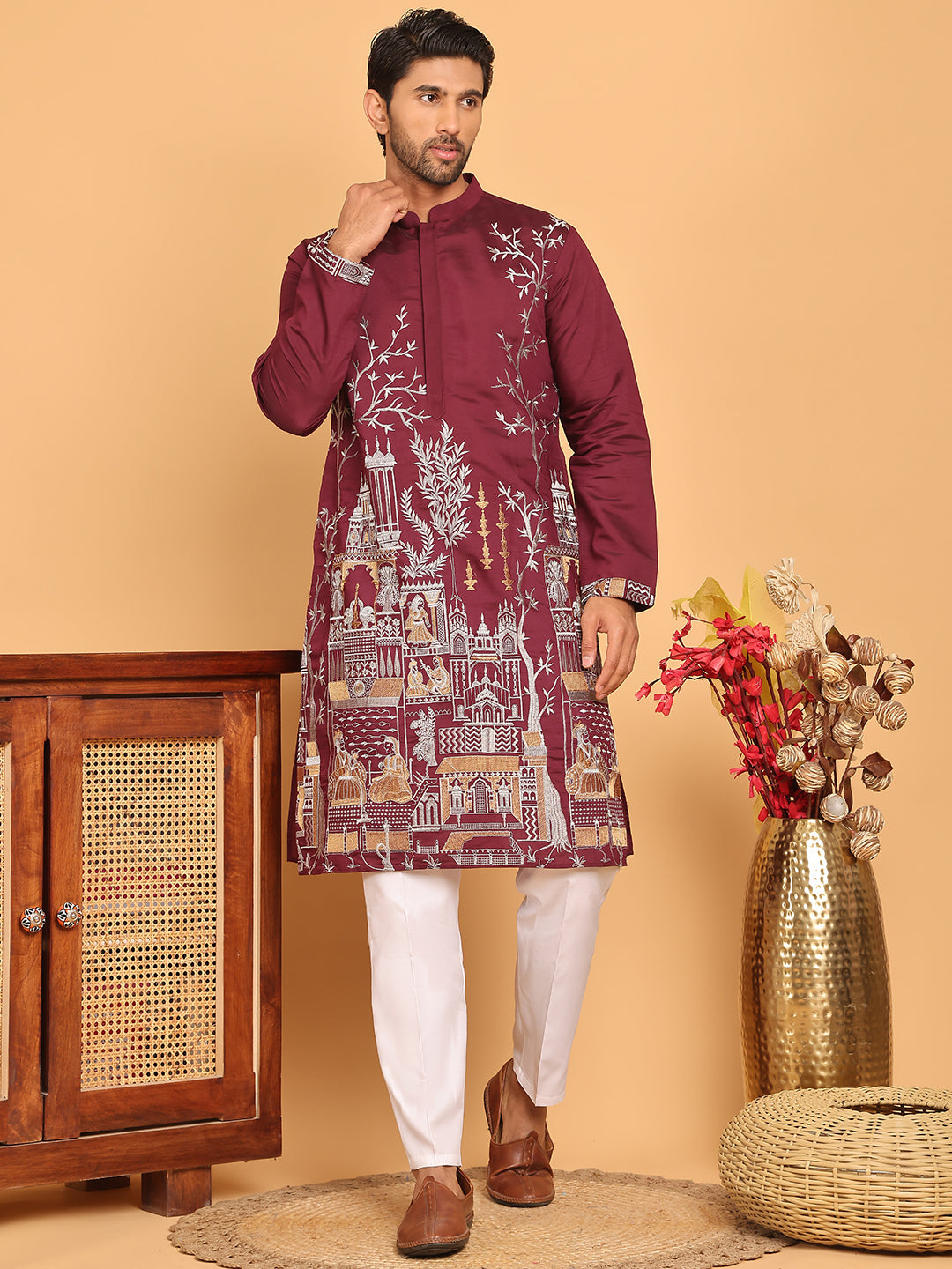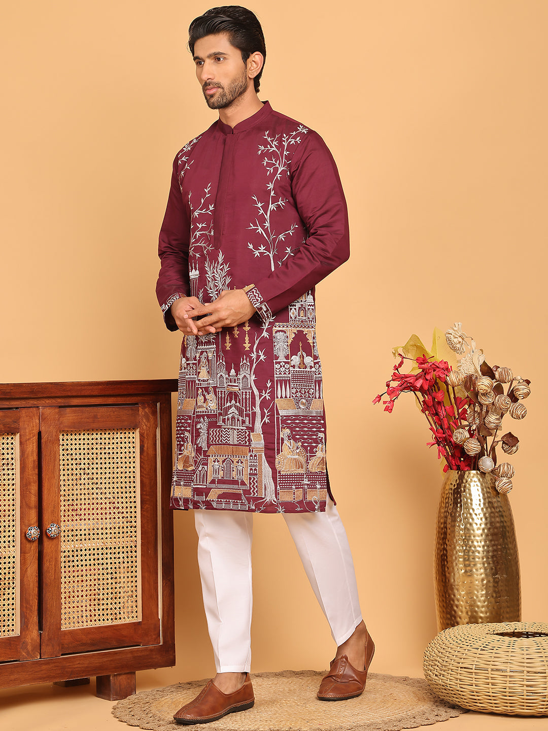 Purple Embroidered Straight Kurta Set For Men ( JOKP P 5176 Purple )