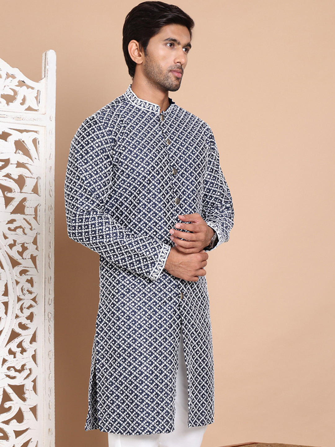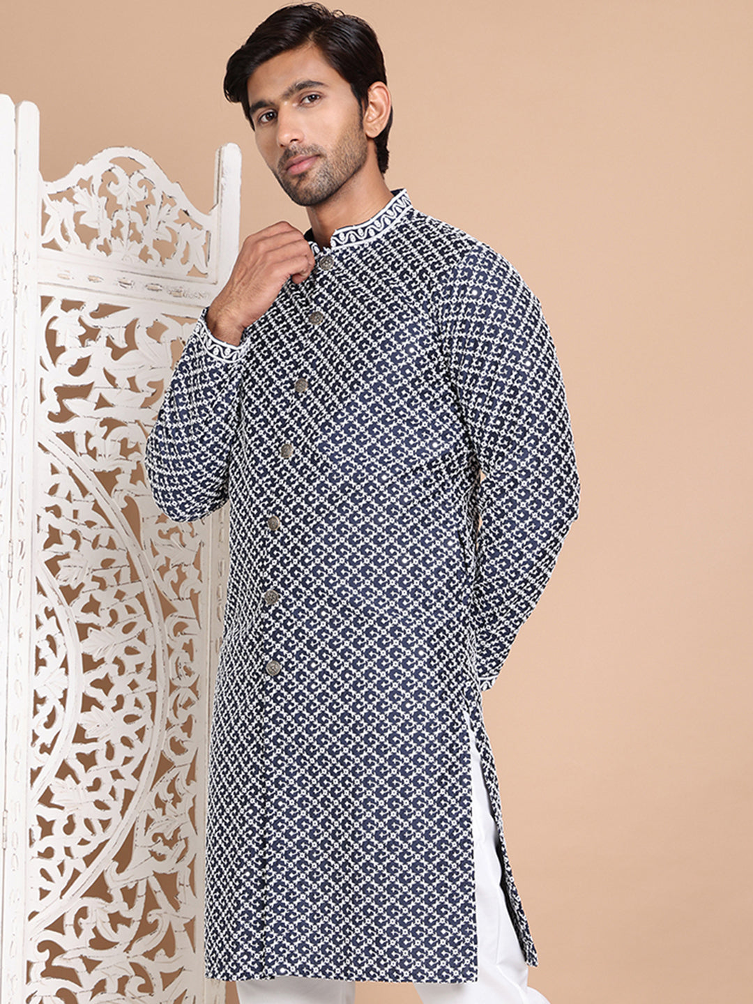 Sequin Chikankari Front Open Kurtas ( KO 5029Navy )