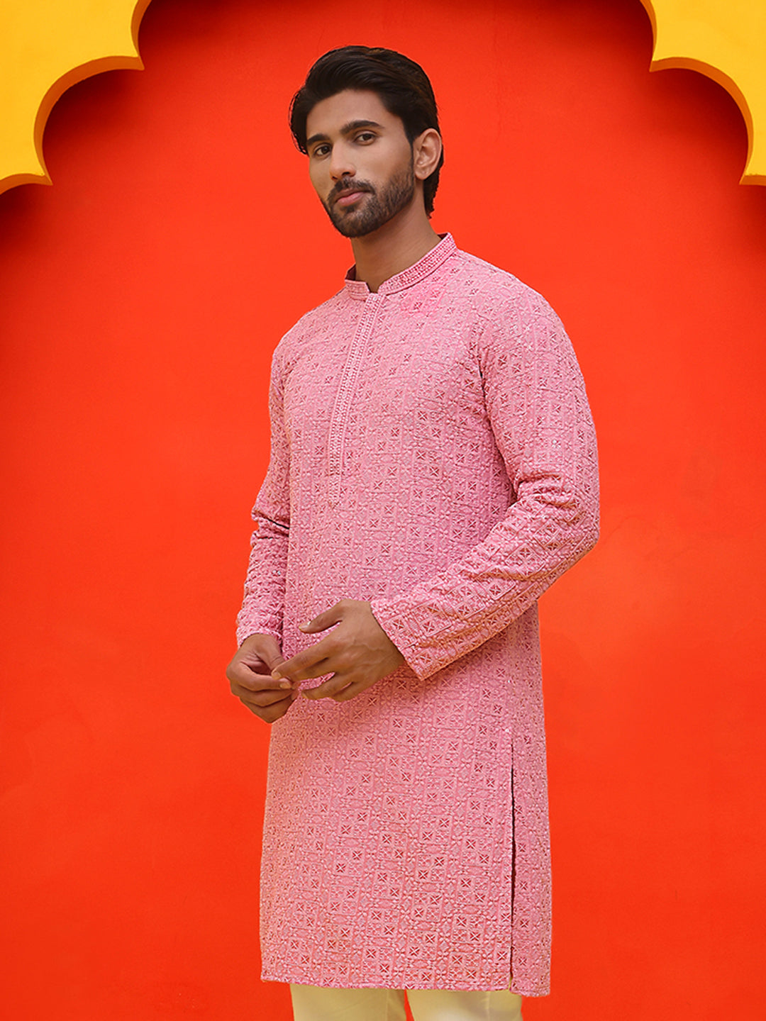 Sequin Embroidered Pure Cotton Kurtas ( KO 5006 Coral )