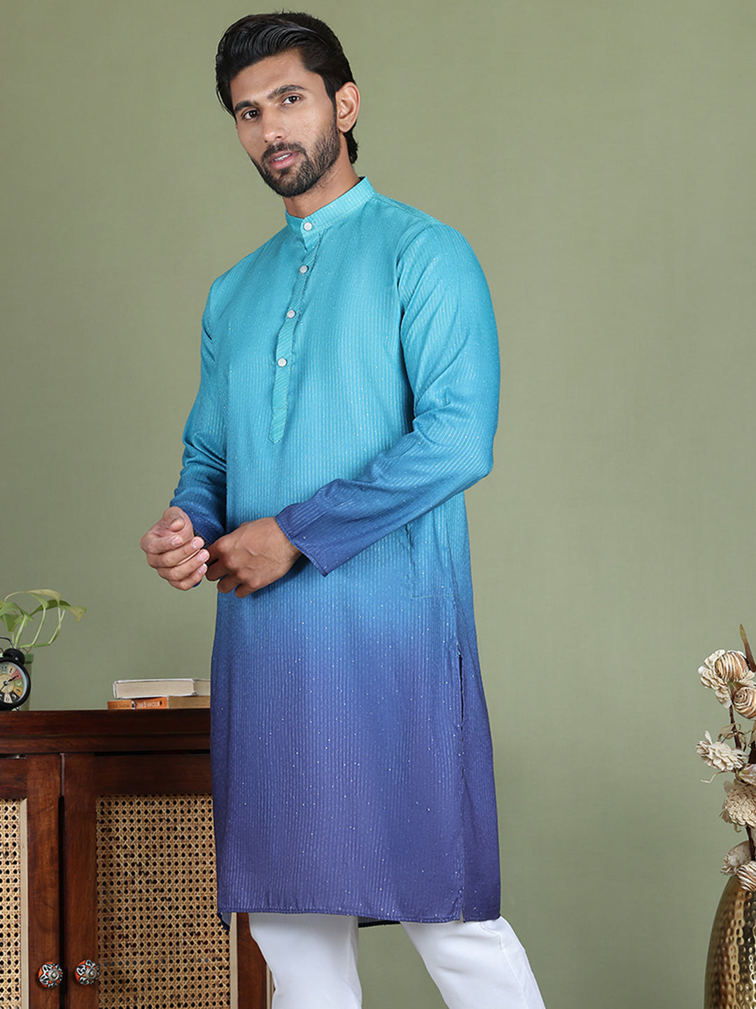 Sequins and Ombre Design Kurtas For Men ( ko 5154Blue )