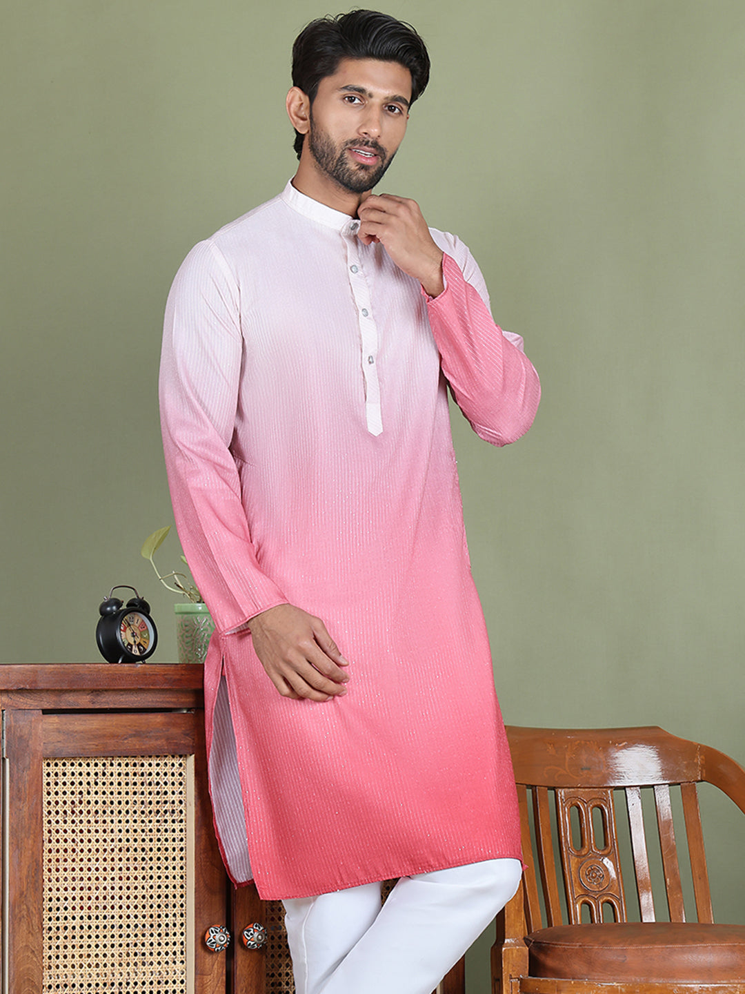 Sequins and Ombre Design Kurtas For Men ( ko 5154Coral )