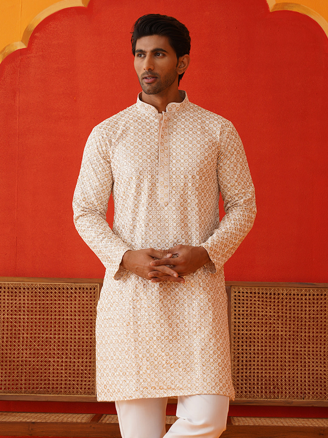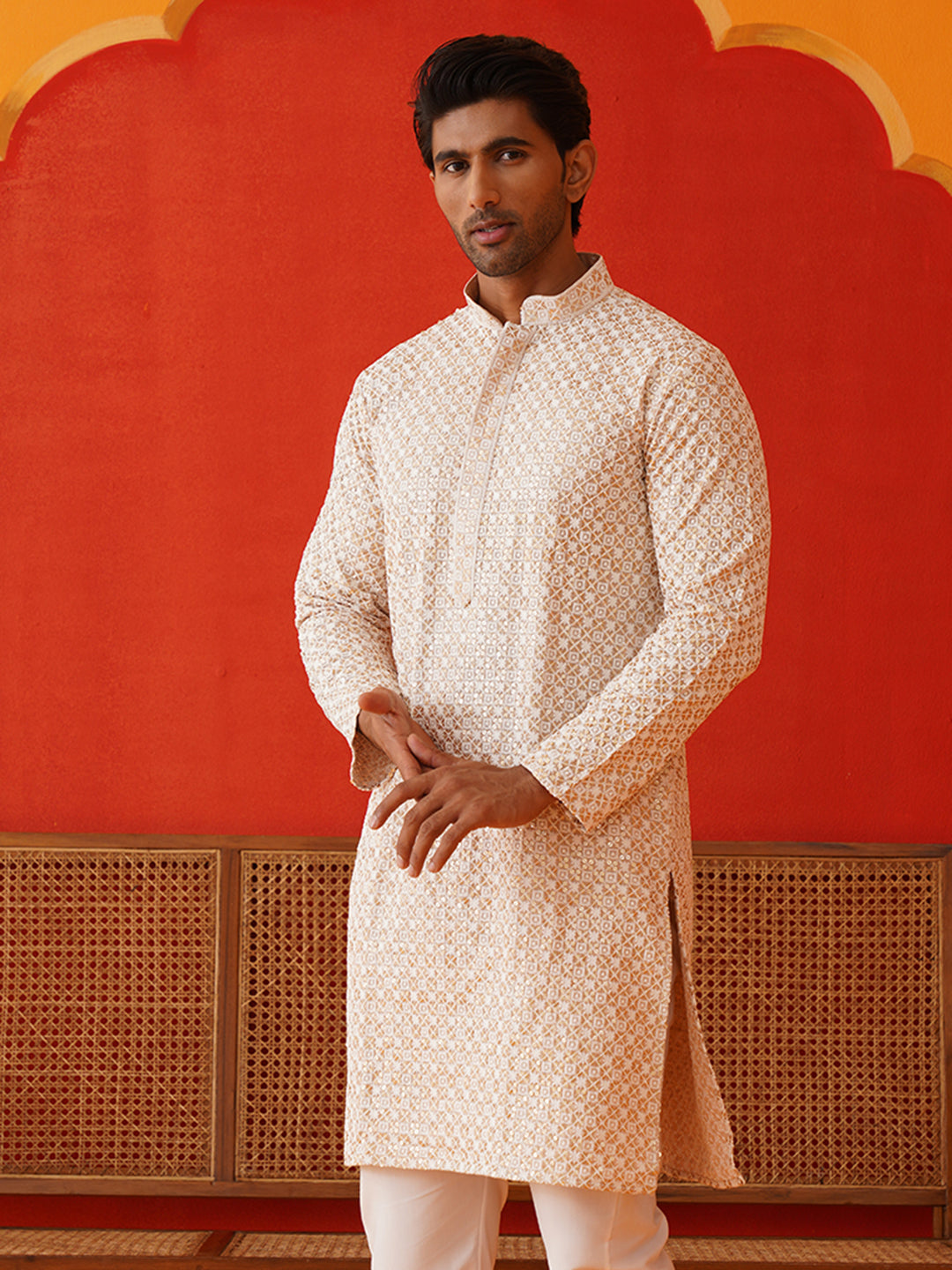 Sequins & Embroidered Kurtas For Men ( KKO 5128Beige )
