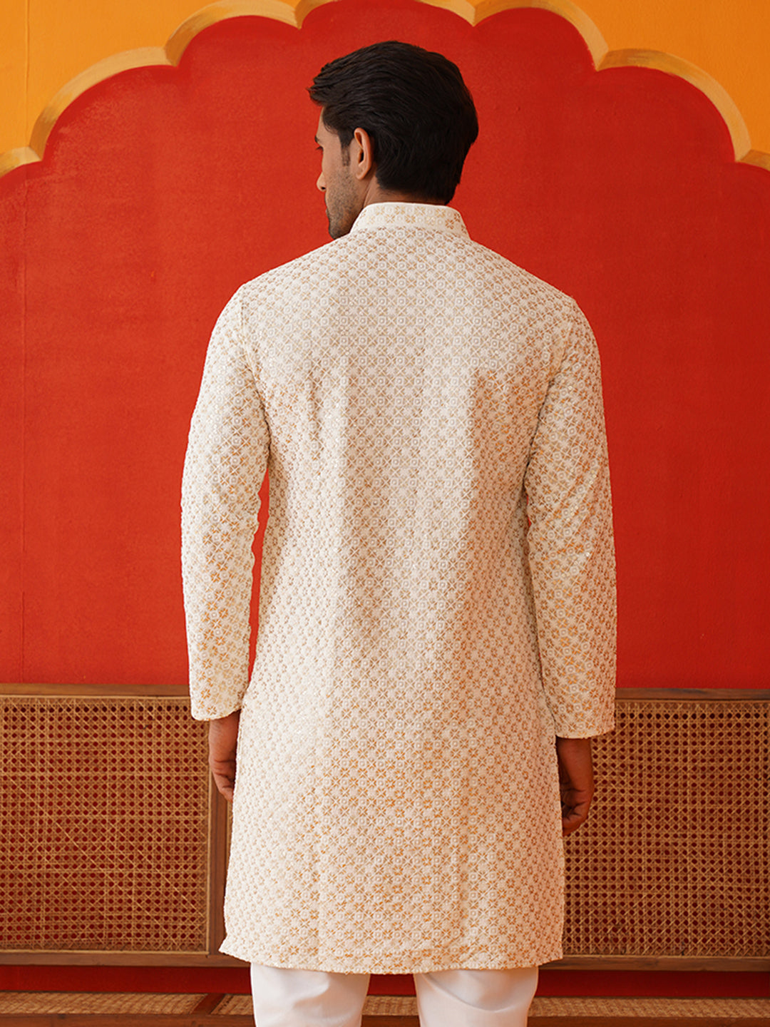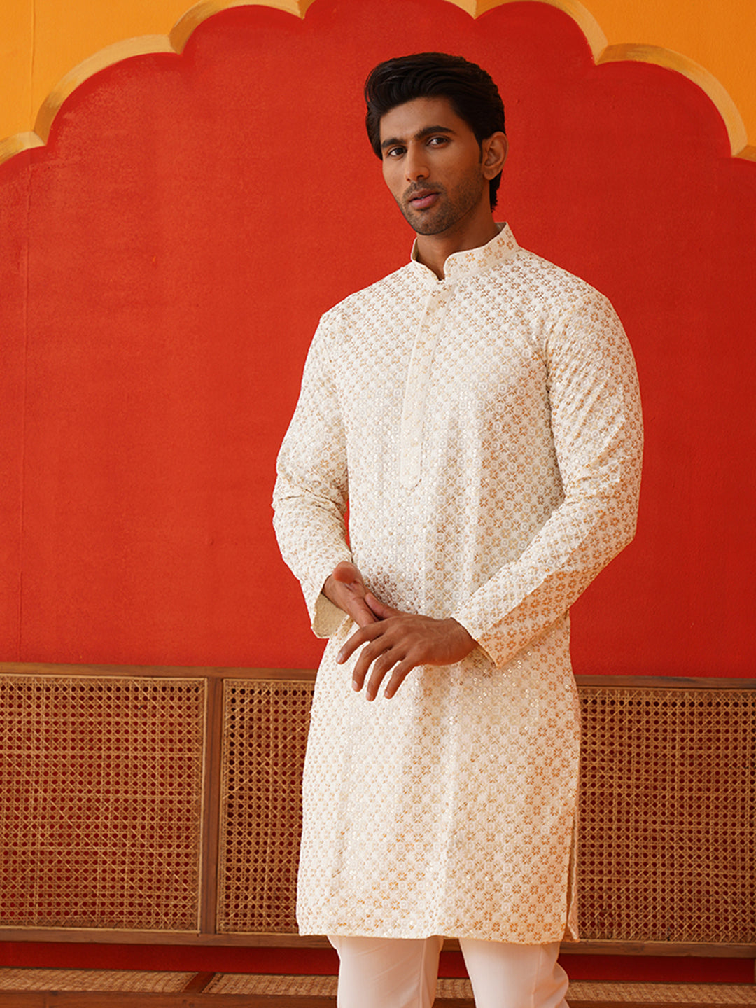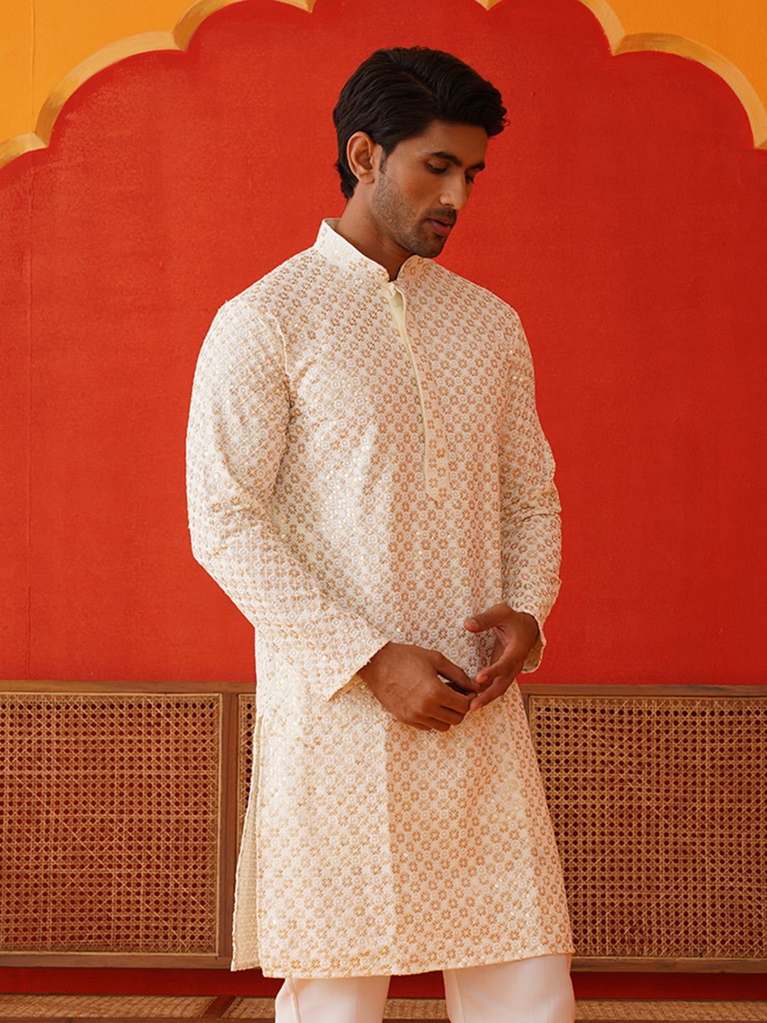 Sequins & Embroidered Kurtas For Men ( KKO 5128Cream )