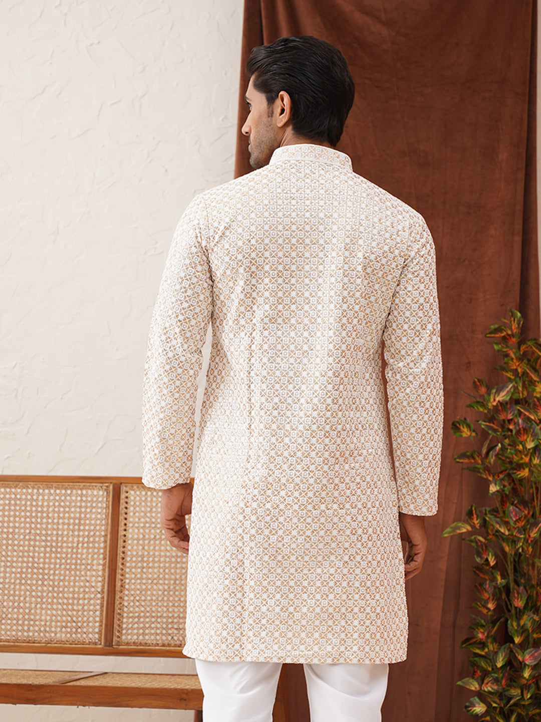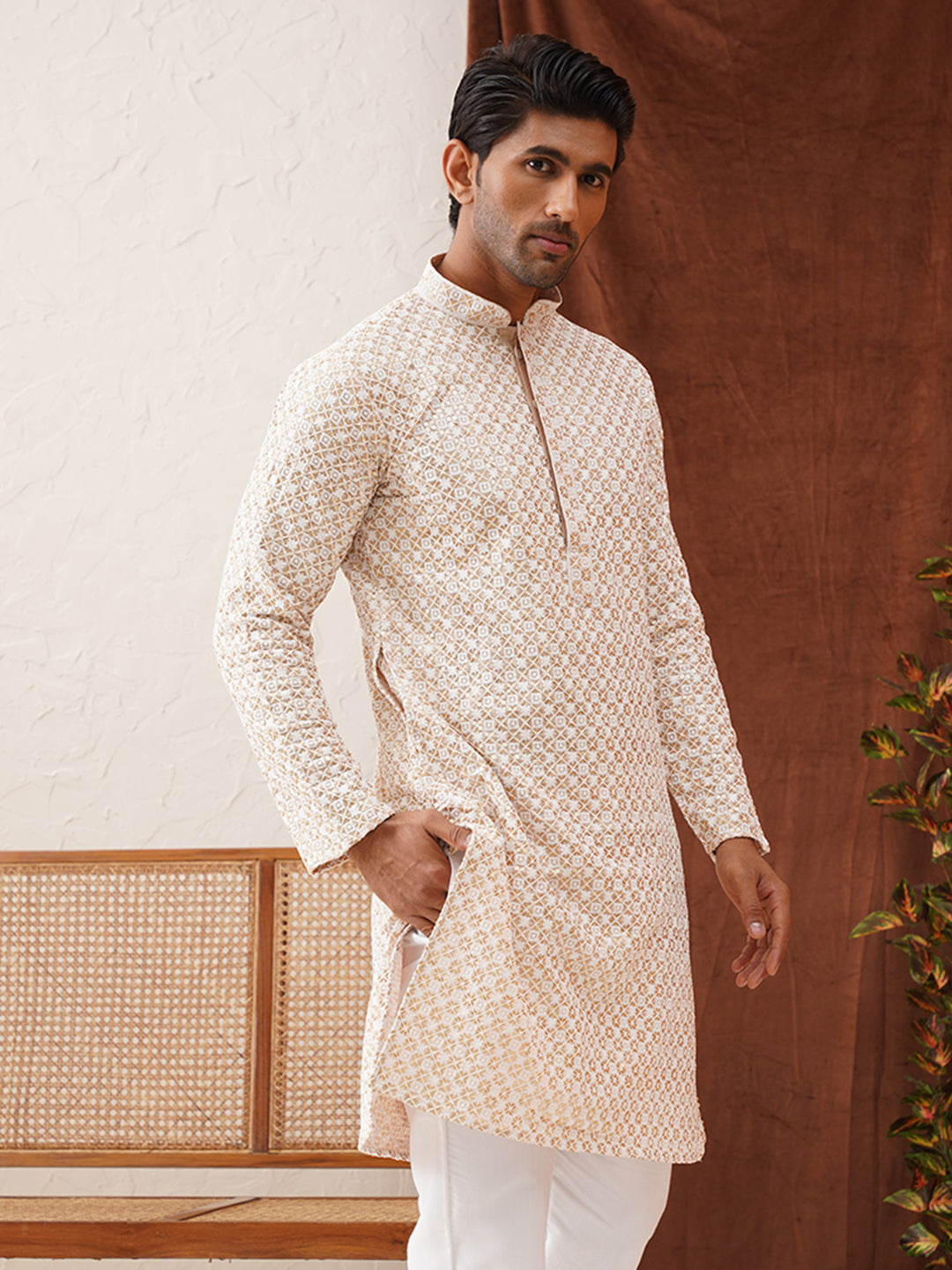 Sequins & Embroidered Kurtas For Men ( KO 5128Beige )