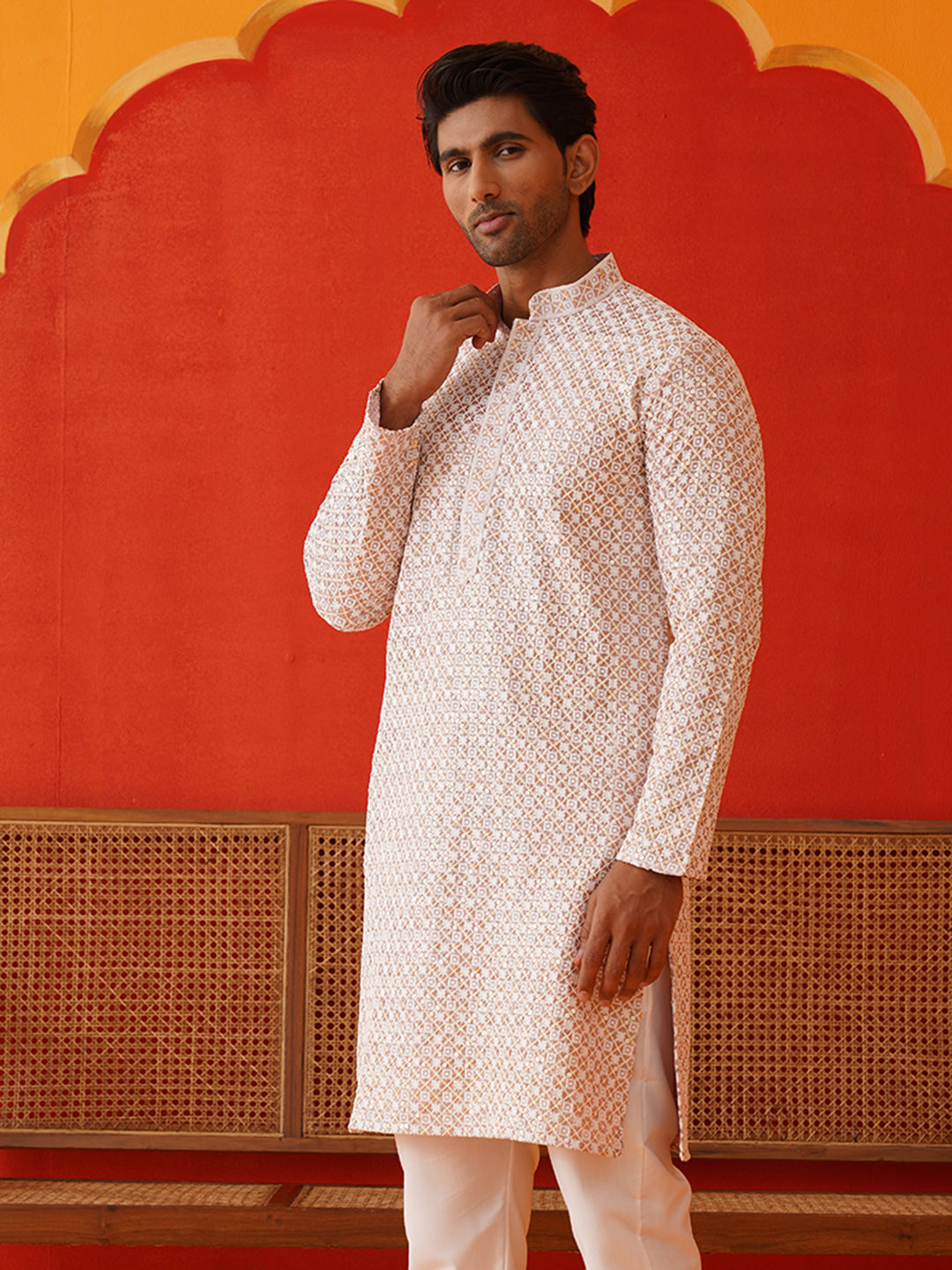 Sequins & Embroidered Kurtas For Men ( KO 5128Pink )