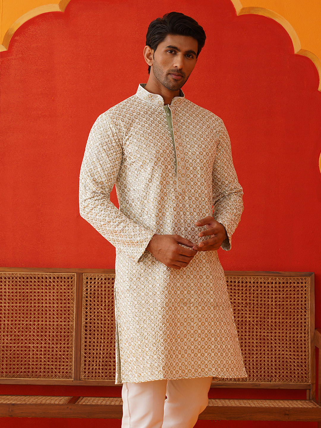 Sequins & Embroidered Kurtas For Men ( KO 5128Pista )