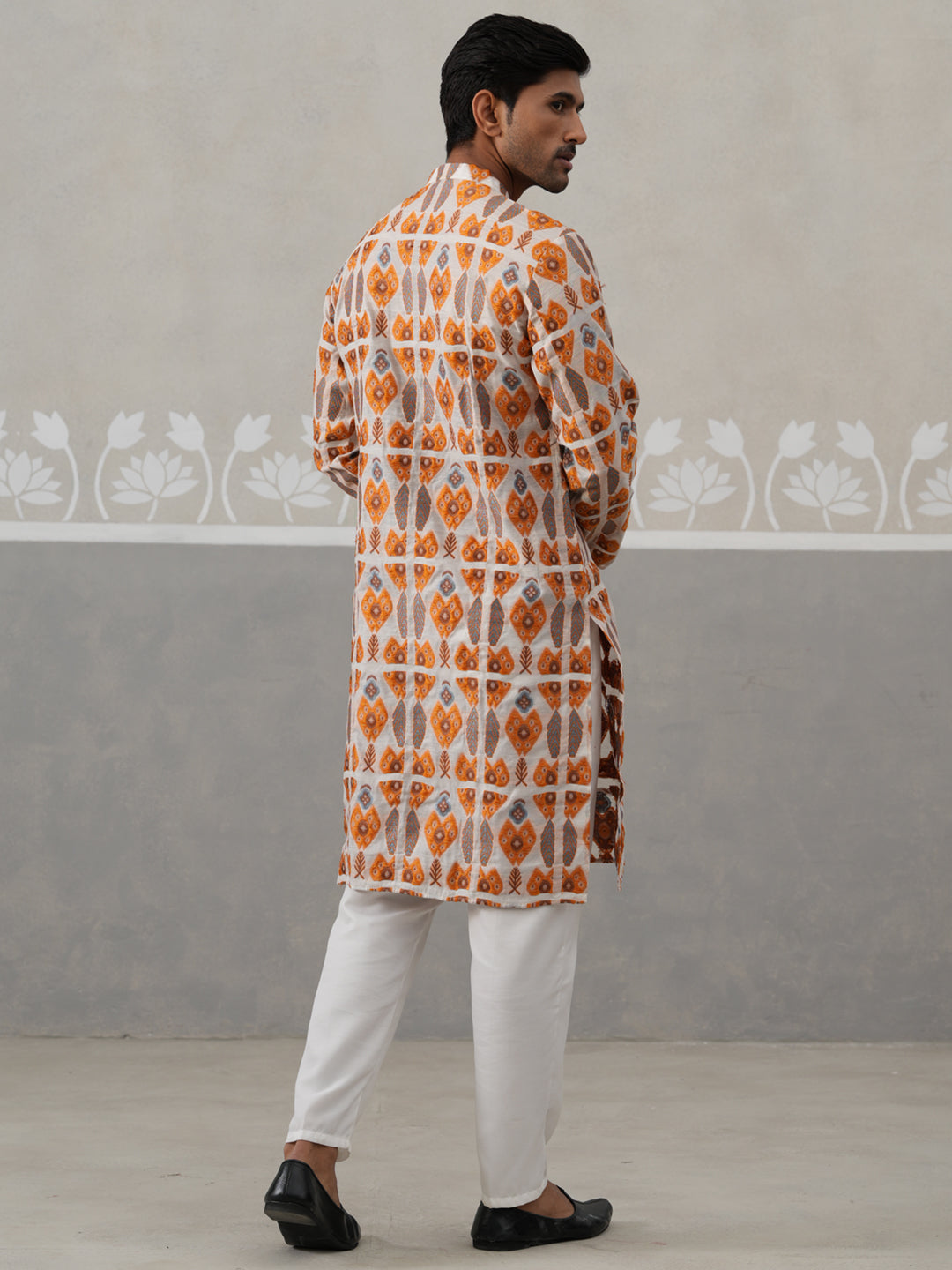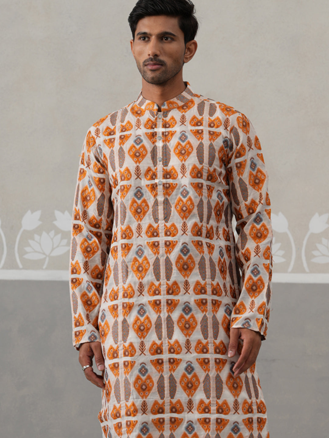Silk Blend Woven Design Kurta Pyjama Set (JOKP P 5315 Orange )