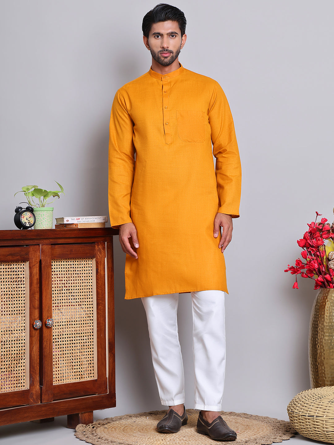 Solid Cotton Kurta Set for Men ( JOKP 5144Mustard )
