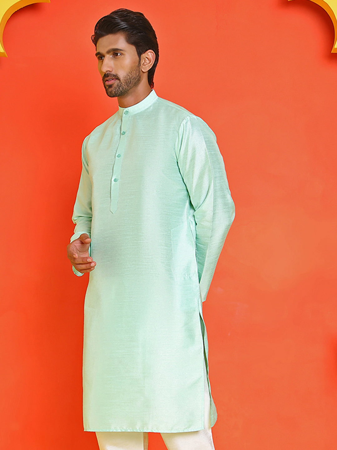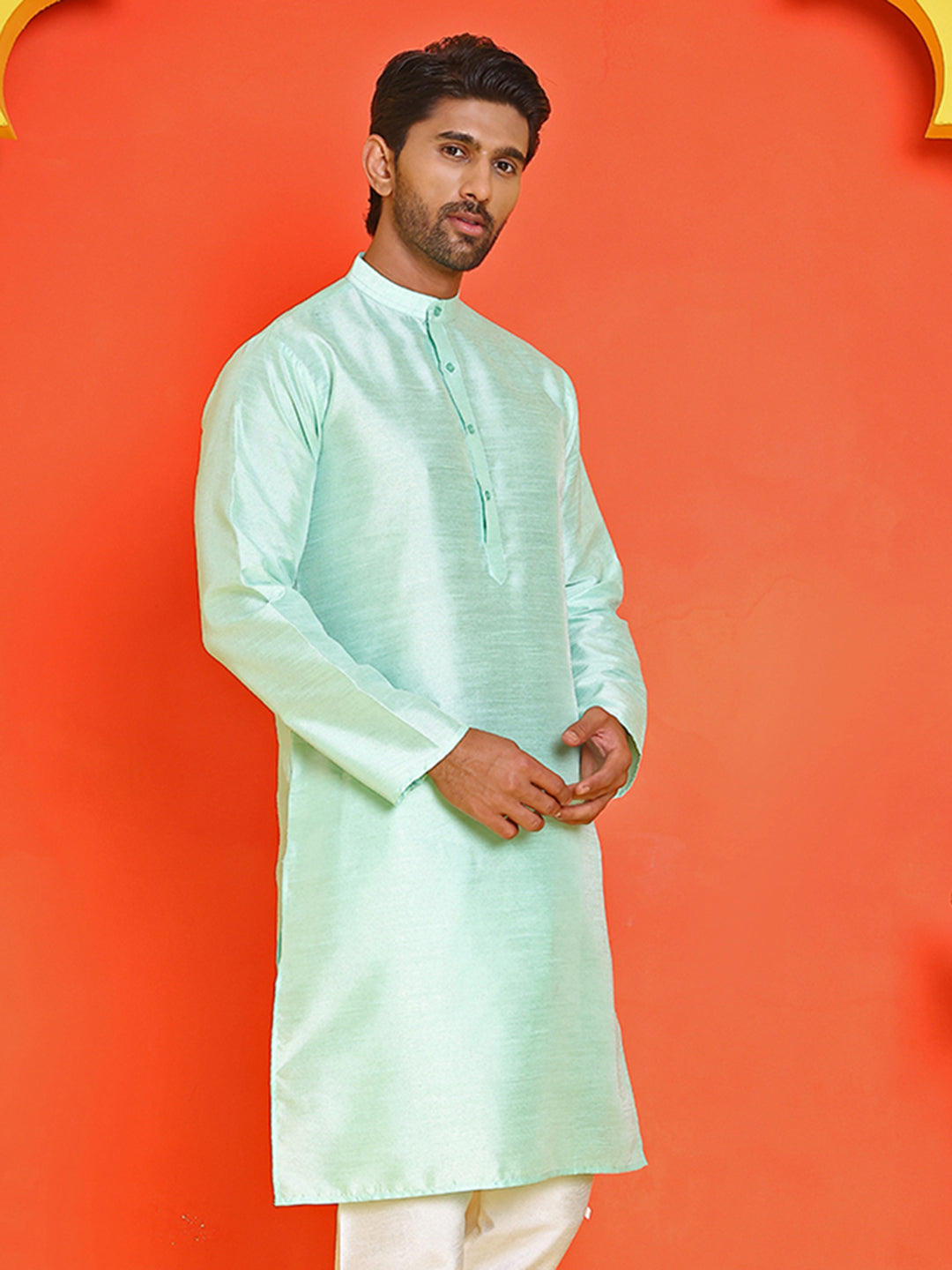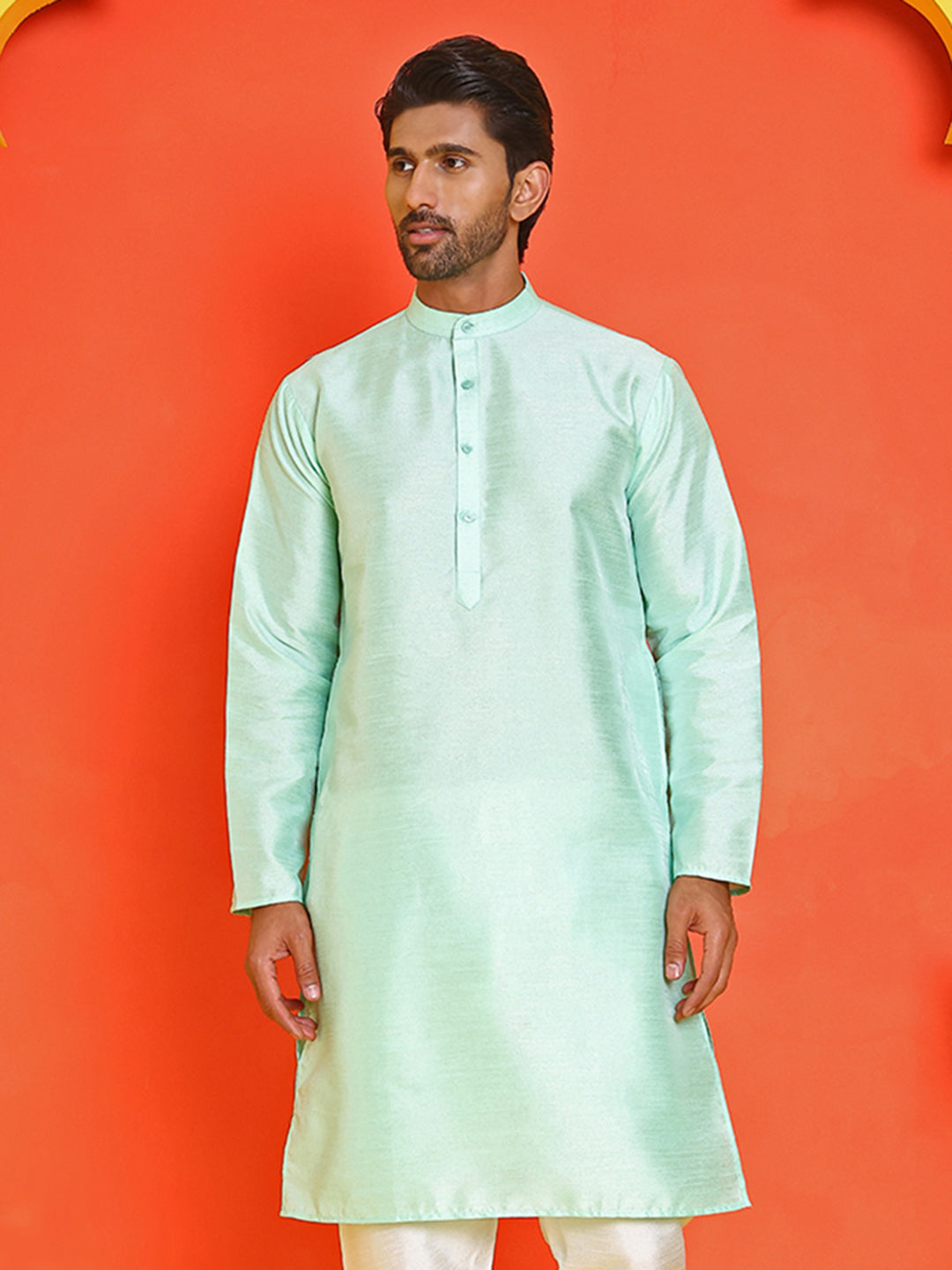 Solid Dupion Silk Kurtas for Men ( KO 5209 Green )