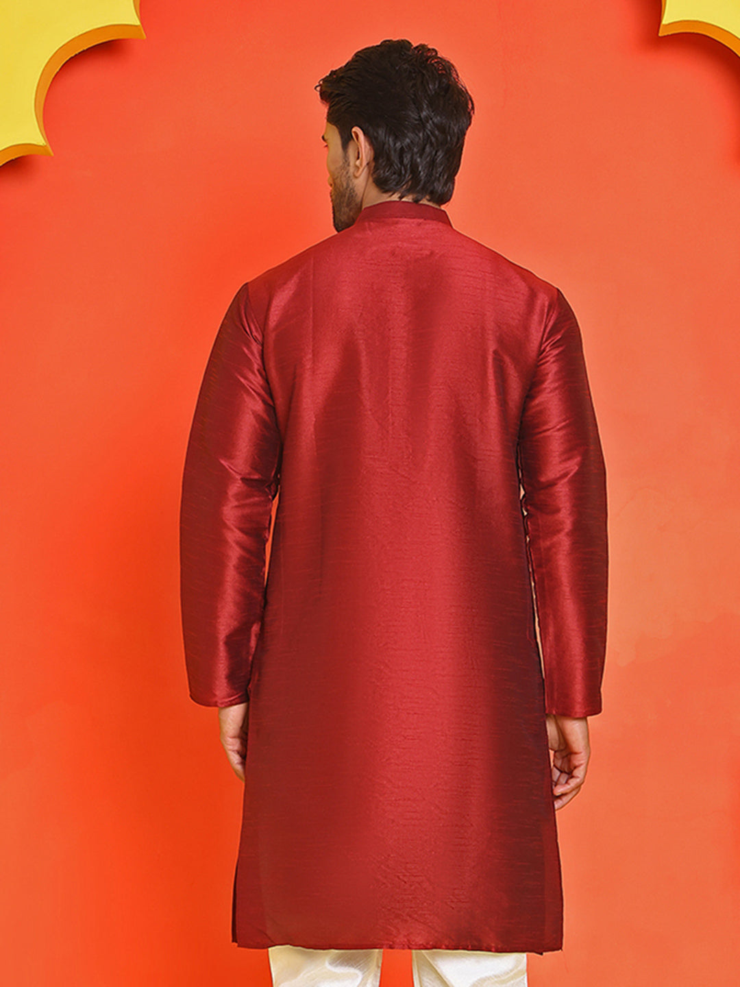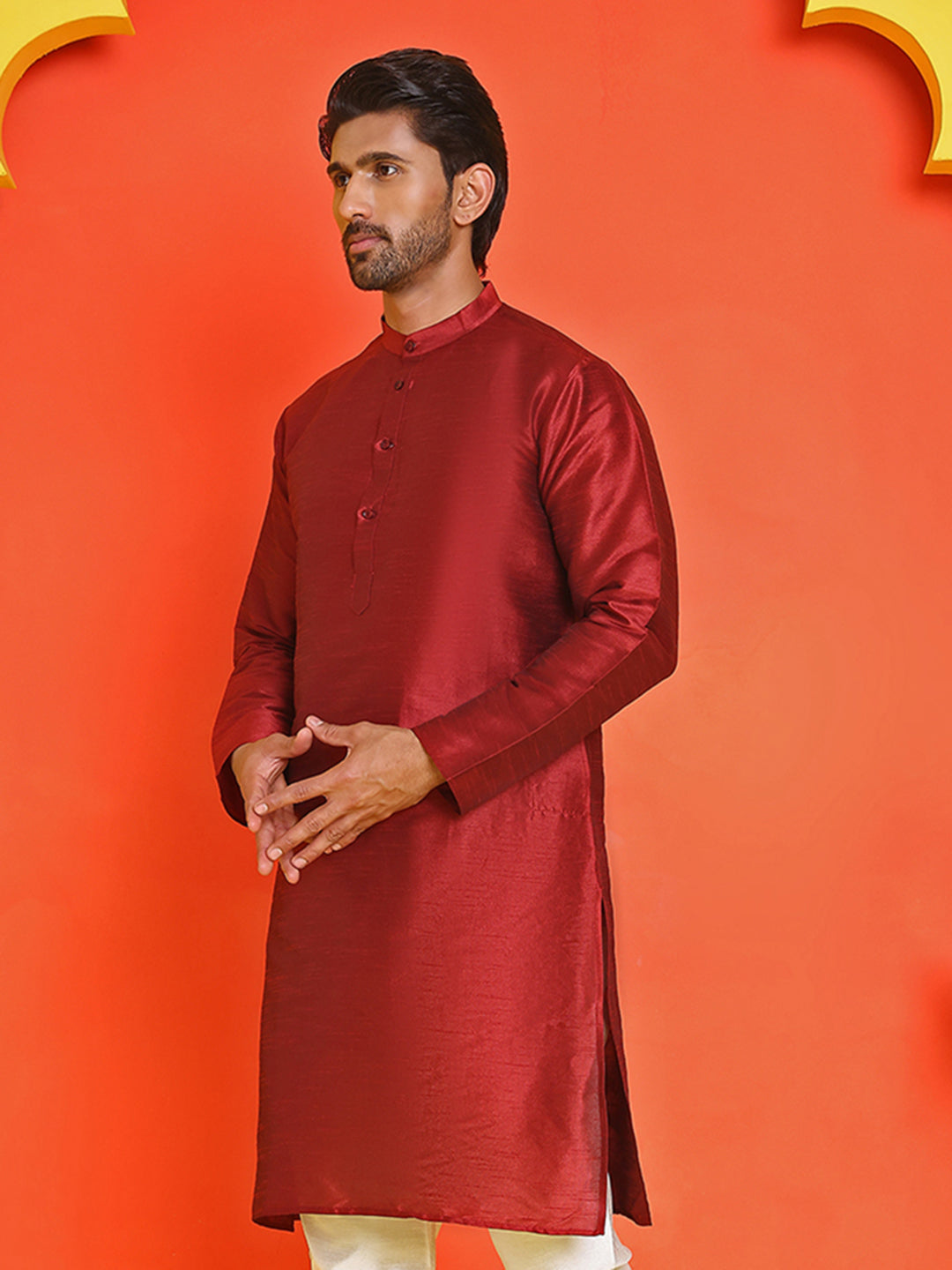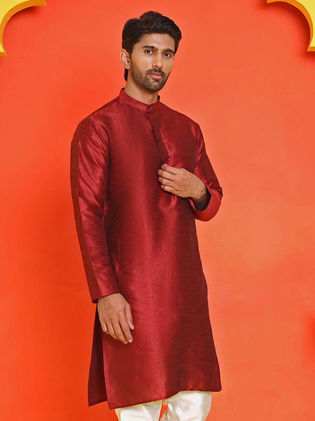 Solid Dupion Silk Kurtas for Men ( KO 5209 Maroon )