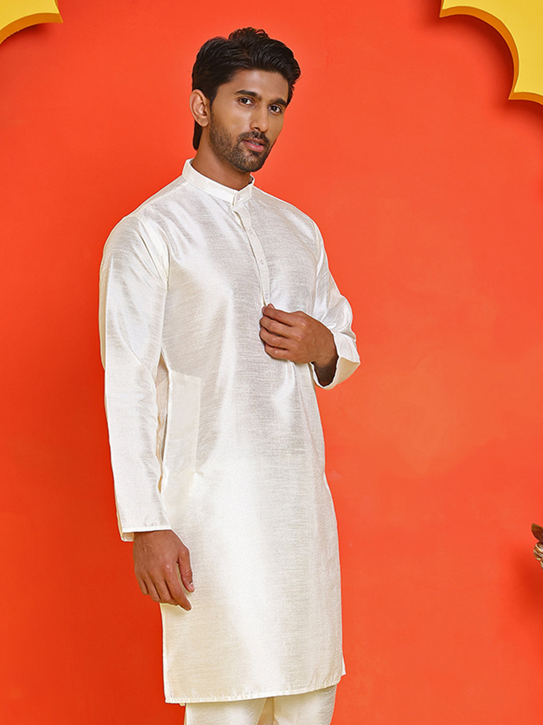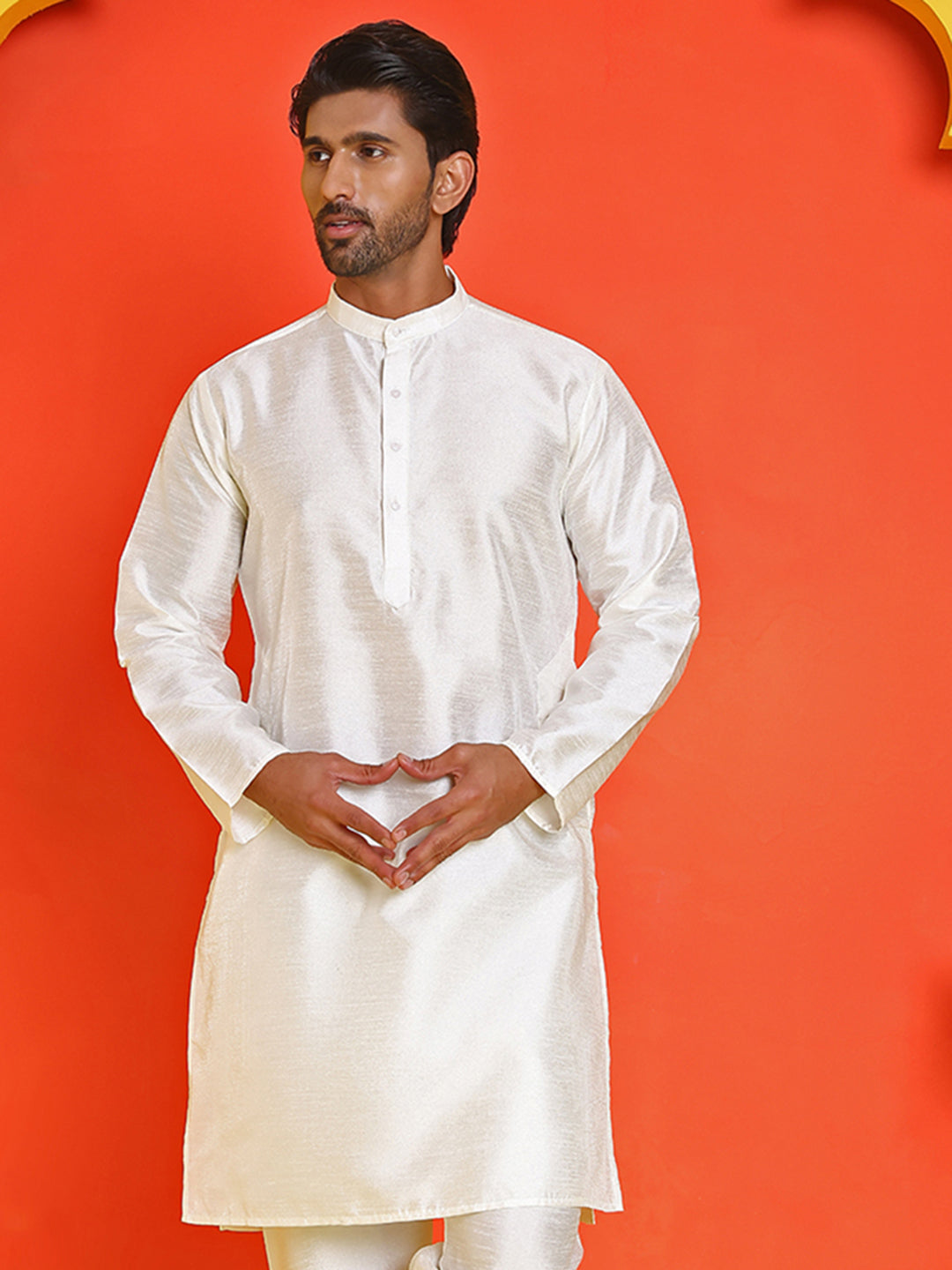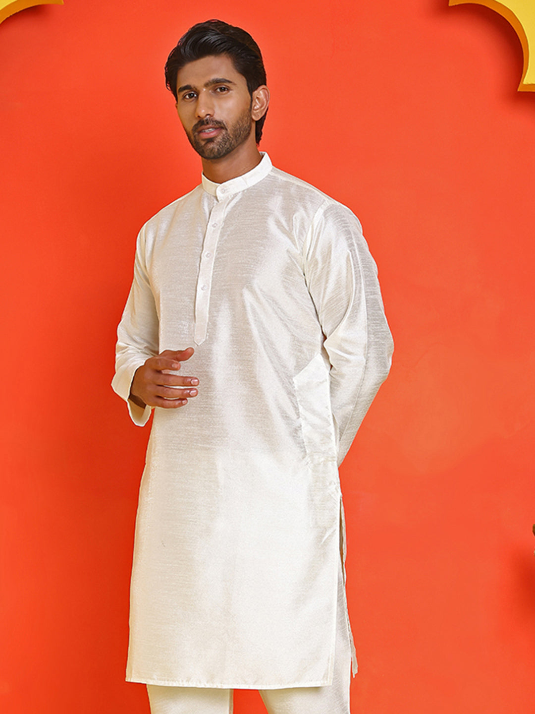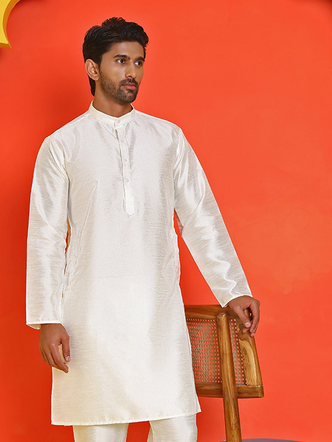 Solid Dupion Silk Kurtas for Men ( KO 5209 White )