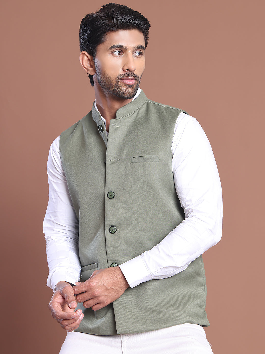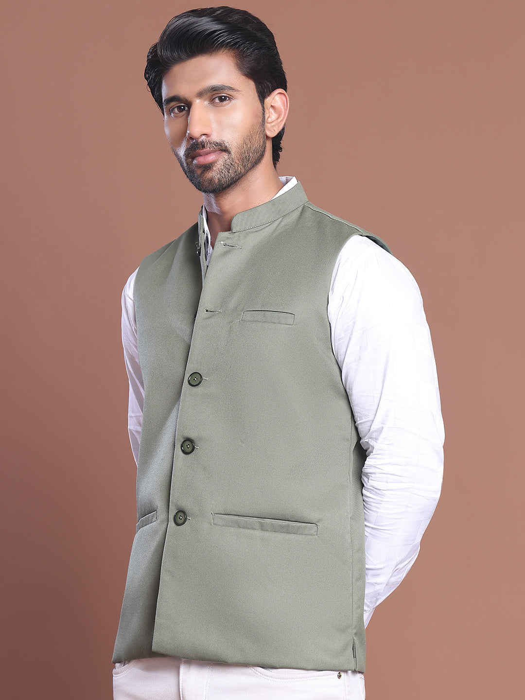 Solid Nehru Jacket For Men ( JOWC 4046 Pista )