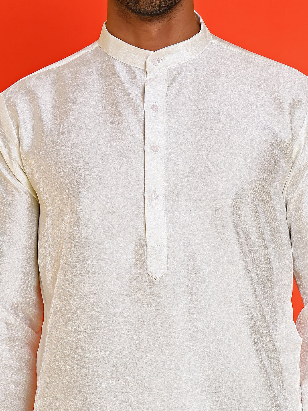 Solid Silk Kurta with Pyjamas ( JOKP P 5209 White )