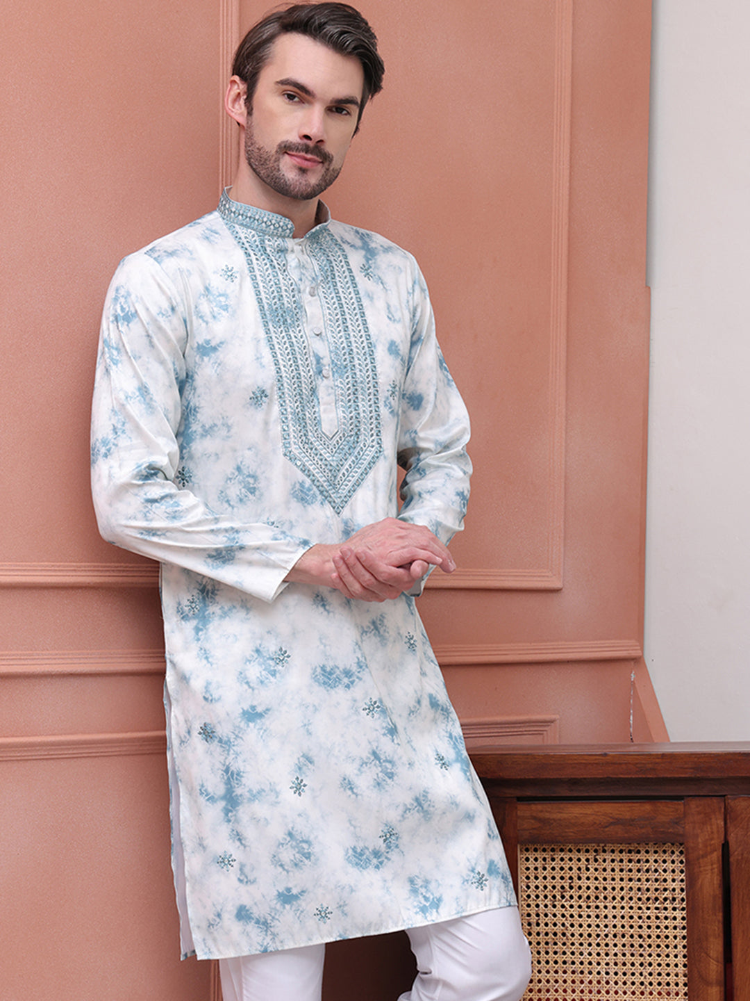 Stone Print With Embroidered kurtas ( KO 5102Sky )