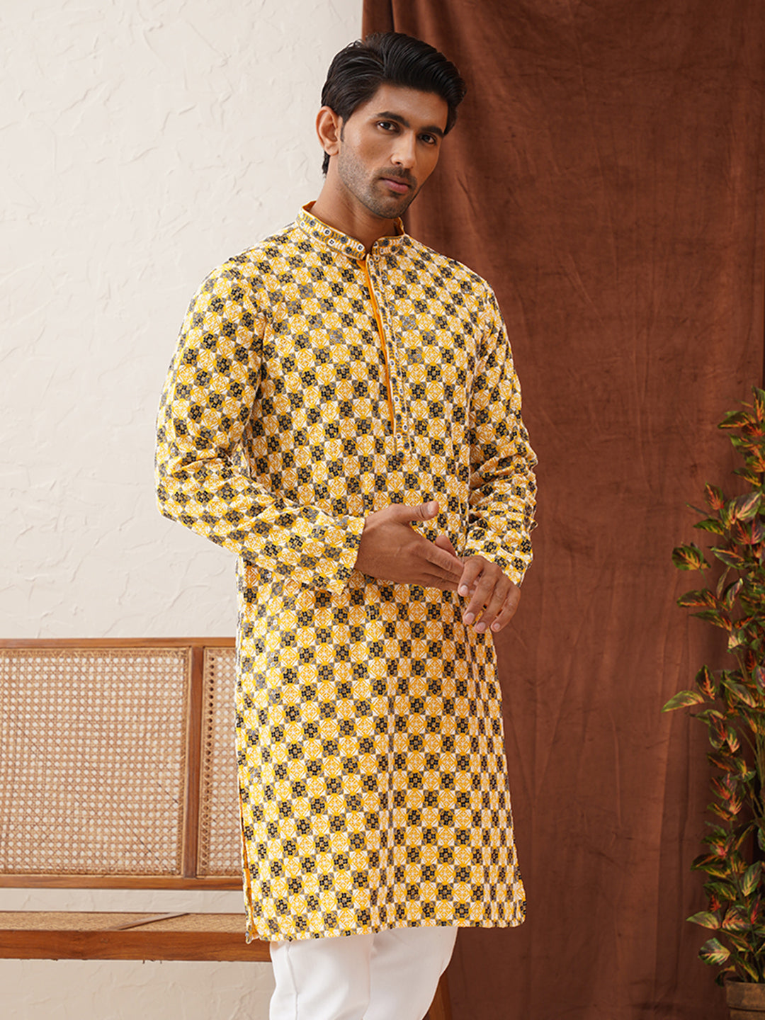Viscose Embroidered Kurtas For Men ( KO 5129Lemon )