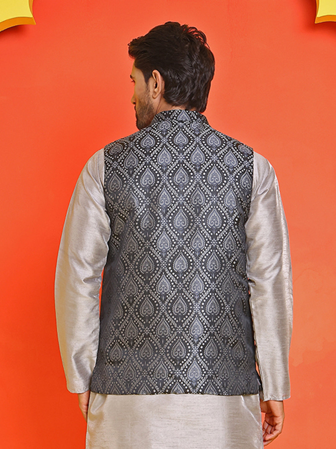 Woven design Nehru Jacket for Men ( JOWC 4131 Black )