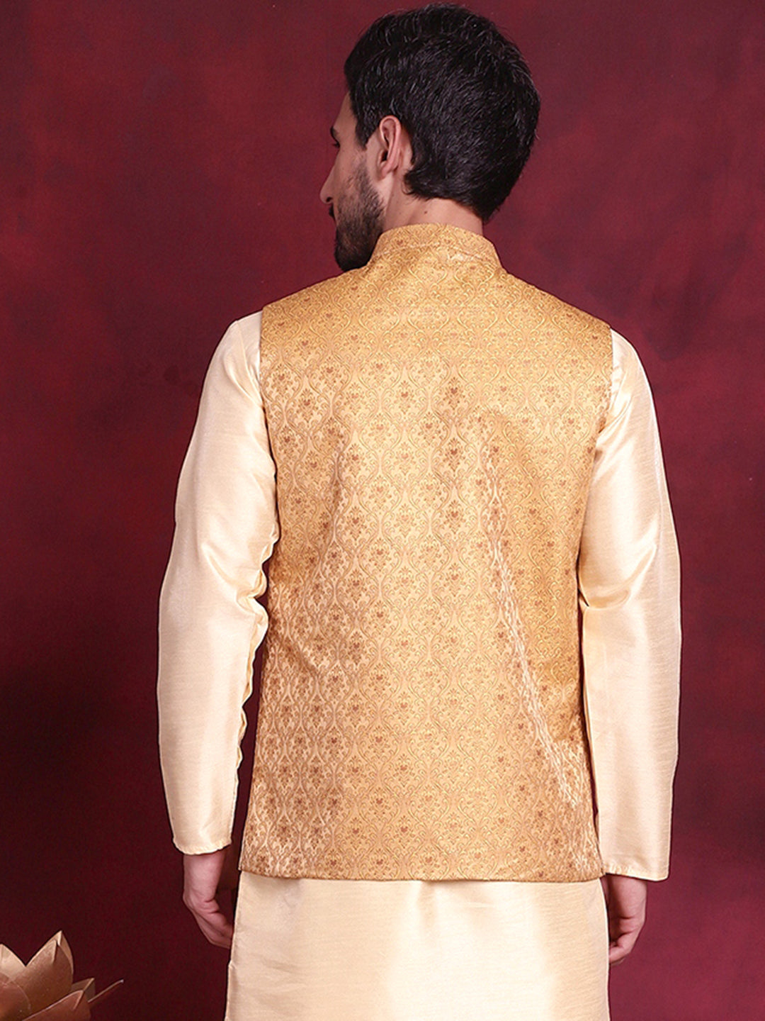 Woven Design Nehru Jacket ( JOWC 4089 Mustard )